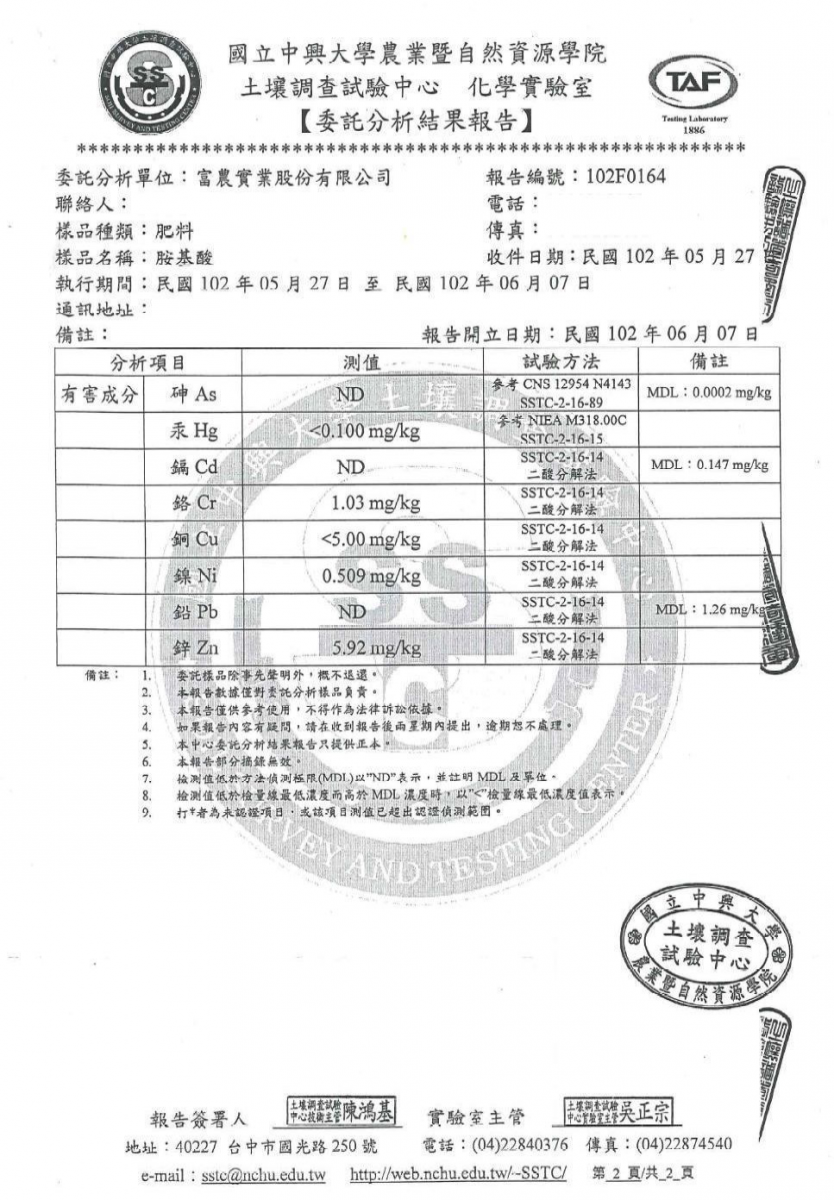 ♦奈米級分子質量低,可於水田入口,同時放水及阿米諾液體肥,因不易沉澱,故可快速