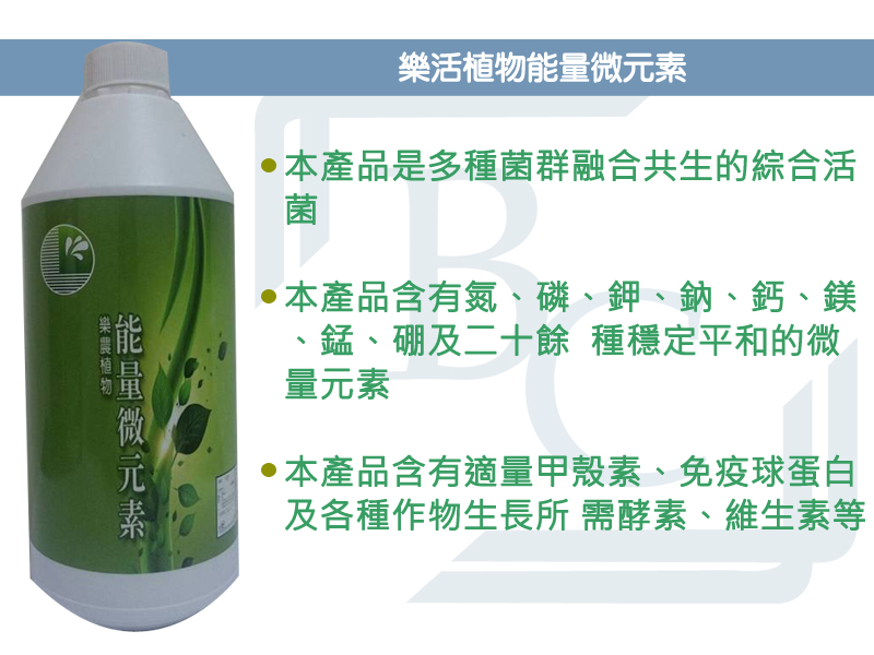 ►內含植物生長所需各種微元素,可加速作物茁壯生長並能增加種植產量